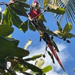 Het is een paradijselijk land waar we terwijl we op het strand lagen, de papagaaien achter ons in de bomen vlogen en we de apen van boom naar boom zagen slingeren.